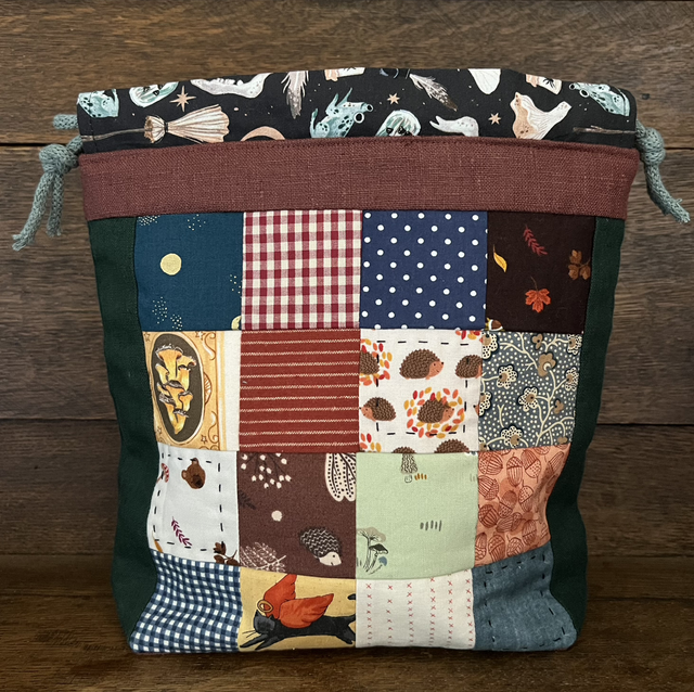 Handmade patchwork and quilted project bag. Lined, one internal pocket.