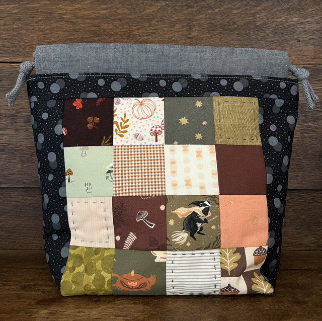 Handmade patchwork and quilted project bag. Lined, one internal pocket.
