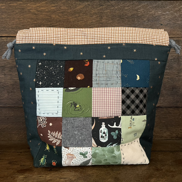 Handmade patchwork and quilted project bag. Lined, one internal pocket.